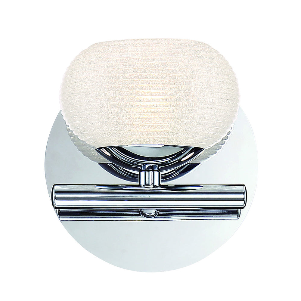 Chrome frame with globe formed etched glass
